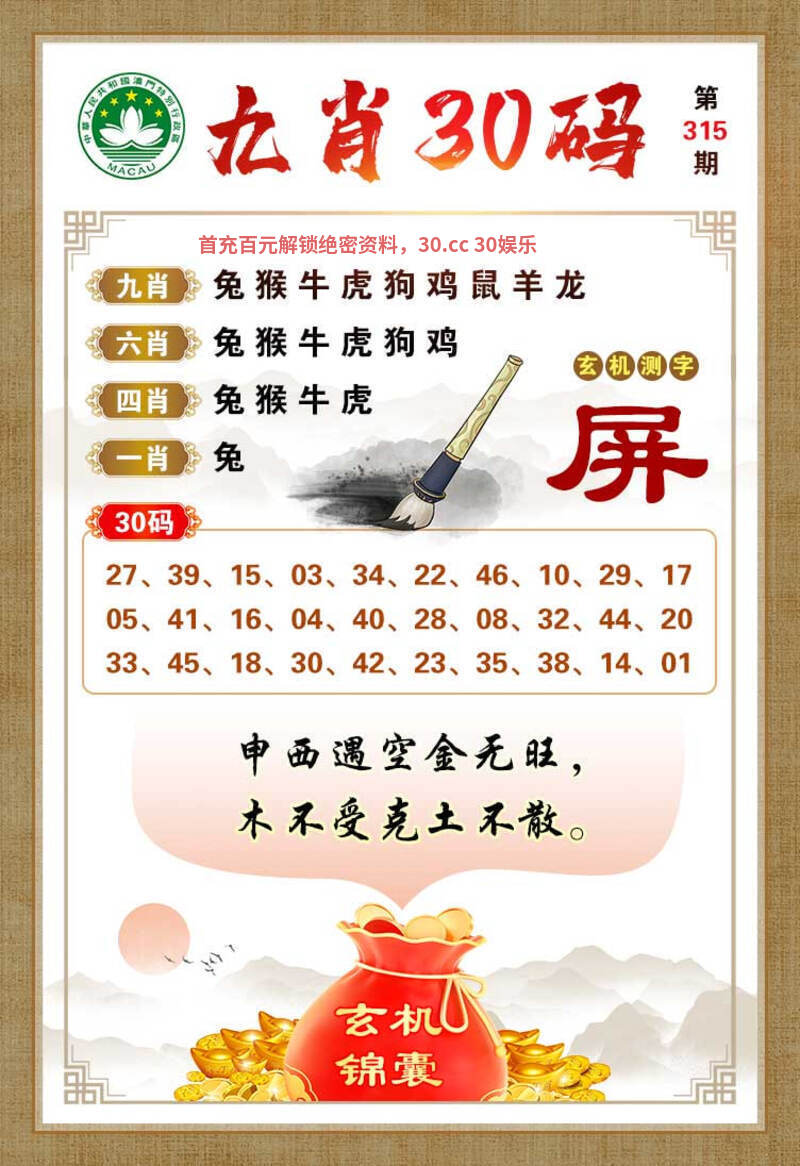 | 304期:【绝杀二肖】〖猴兔〗开:马48准 |